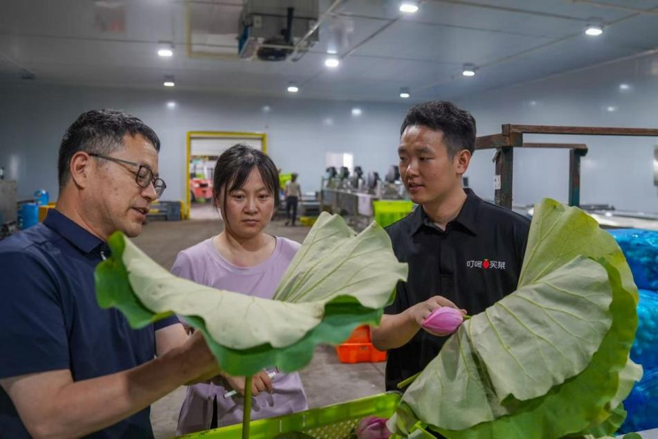 “采收后產(chǎn)品最快在12小時內(nèi)送達(dá)城市分選中心,經(jīng)過品質(zhì)把關(guān)后很快就可以送到用戶手中!倍_速I菜蔬菜開發(fā)錢帥介紹,這已是他與基地負(fù)責(zé)人錢俊合作的第四年!拔覀儓猿帧商晾锂a(chǎn)出什么,我們就賣什么’,讓消費者以更高性價比享受更新鮮的滋味,農(nóng)戶也免去銷路之憂!边@片荷塘支撐著包括“地標(biāo)好物”脆藕,以及藕帶、蓮蓬、蓮子、“荷葉+荷花”在內(nèi)的5大主力藕品,今年預(yù)計總銷量將達(dá)275萬份。