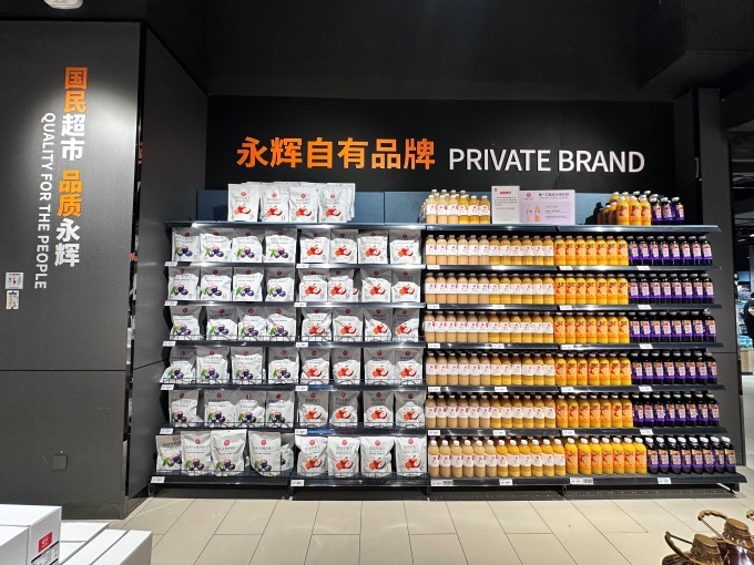 令人驚喜的是,超市引入胖東來自有品牌專區(qū),DL果蔬餐具凈、DL洗衣凝珠、DL寶豐自由愛白酒、DL水果燕麥脆、DL100%果蔬汁、DL壓榨一級花生油等商品集中陳列,讓濱海市民在家門口就可以買到胖東來品質(zhì)好物。