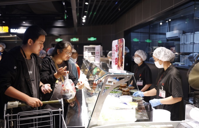 循香移步,熟食檔口濃濃的煙火氣撲面而來。本地特色傣味雞爪以傳統(tǒng)手工腌制工藝亮相;胖東來同款香辣牛肉條、秘鹵肉腸、網(wǎng)紅小甜腸、韓式炸雞吸引年輕食客掃碼下單。據(jù)門店負(fù)責(zé)人介紹,“現(xiàn)制的熟食商品達(dá)到了390支,日邦、雙匯品牌加盟提升品質(zhì),與昆明夜宵文化深度契合!