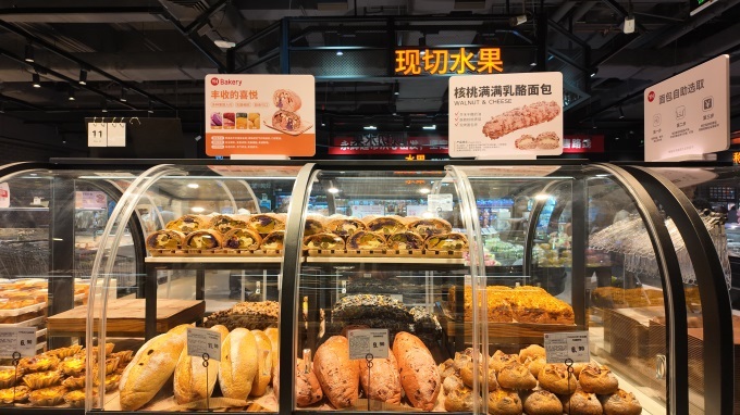 烘焙與熟食區(qū)更是調改后的“人氣擔當”。烘焙主推豐收的喜悅之菌菇多多,以豐富菌菇入餡,咸香可口;榴蓮千層和榴蓮大福更是榴蓮控的福音,果肉綿密,香甜濃郁。熟食檔口則呈現(xiàn)“環(huán)球風味+地域煙火”:現(xiàn)烤奧爾良雞、韓式炸雞與脆皮燒豬組成炙烤矩陣,更有三文魚刺身輕食、精選壽司及地方特色石歧鹵鴿,提供一站式多元便捷的餐飲解決方案。