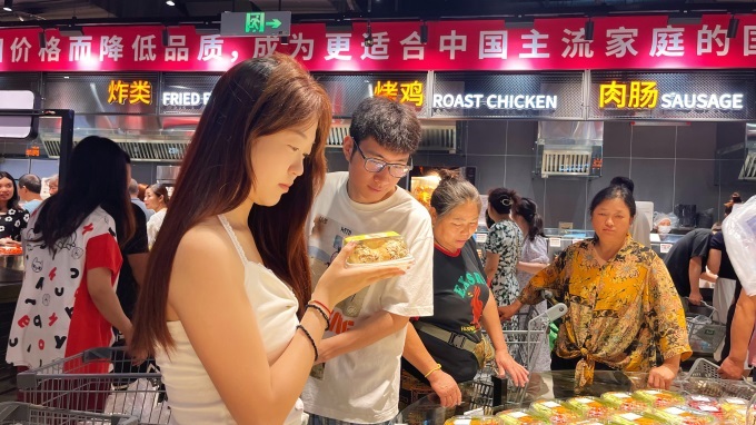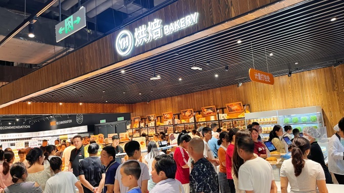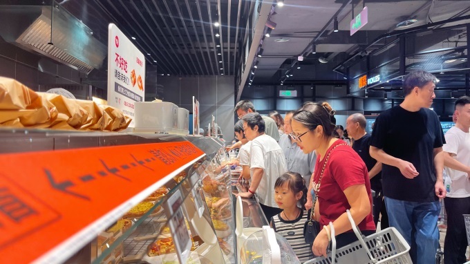 烘焙熟食專區(qū)成焦點(diǎn),煙火氣升級。烘焙及熟食占比從6.4%提升至10.6%,營業(yè)面積增至342㎡,新引入220款現(xiàn)制現(xiàn)售品,其中麻辣小龍蝦、鍋包肉、熱鹵甜腸、榴蓮酥、烤雞翅等熱銷單品尤為火爆。 消費(fèi)者陳女士分享:“超市熟食現(xiàn)做現(xiàn)賣,透明檔口看著安心,味道還特別好,家人吃得放心,性價比比外賣高多了。