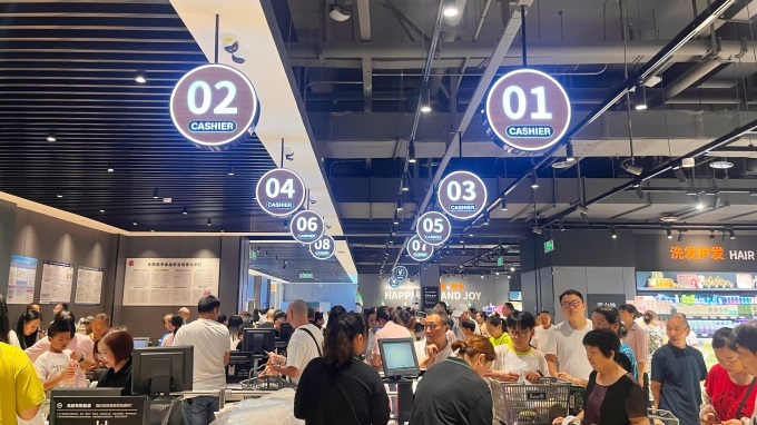 步入煥新后的門店,首先感受到的是空間帶來的舒適與自由。 本次調(diào)改對空間動線進(jìn)行了全面優(yōu)化,通道拓寬至3米,貨架高度降至1.6米,并取消了強(qiáng)制購物動線和超高中隔墻。視野瞬間開闊通透,顧客可以隨心所欲地穿梭于貨架之間,無需再擔(dān)心擁擠推搡。 這一改變尤其受到帶娃家庭的歡迎。顧客王先生對此深有感觸:“現(xiàn)在逛超市終于不怕推車“打架”了,空間大了,孩子自己推著小車一路看過去都很開心,體驗感好太多了!