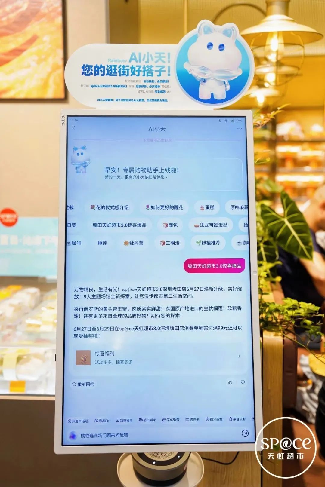 作為天虹數(shù)科首個(gè)AI試點(diǎn)門店,sp@ce3.0坂田店承擔(dān)起“AI+零售”試驗(yàn)田的角色,科技正逐步隱于空間敘事之中。