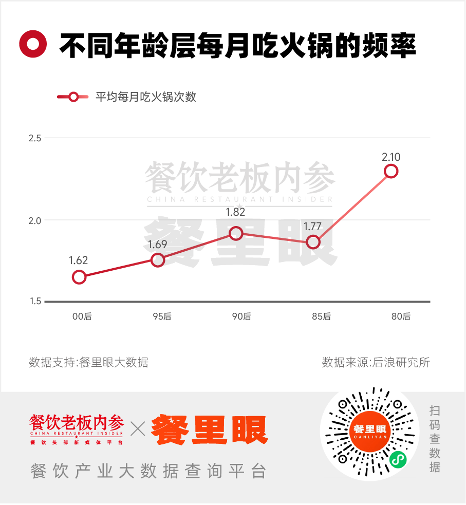 據(jù)后浪研究所數(shù)據(jù),年輕人已經(jīng)逐漸對(duì)火鍋“祛魅”,大部分年輕人平均每月吃火鍋次數(shù)不足2次,這個(gè)頻率也是隨著年齡減小而同步減少。Z世代和更年輕的消費(fèi)者,正在被更多樣、更輕盈、更個(gè)性化的飲食方式所吸引,火鍋“社交剛需”的光環(huán)逐漸褪去。