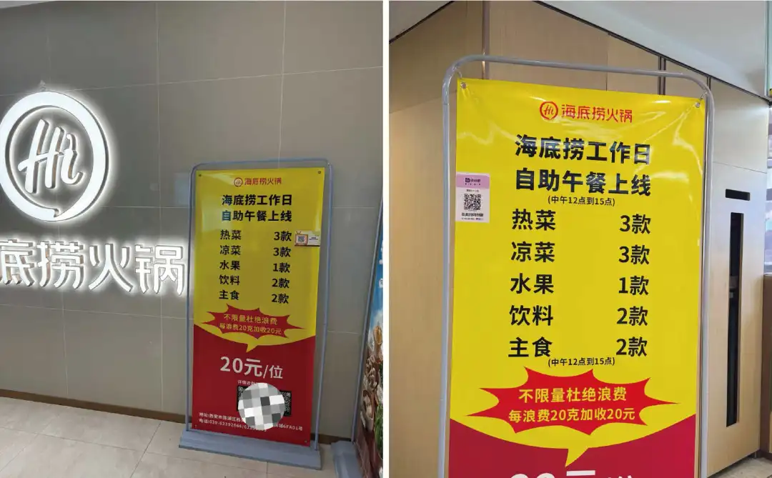 除了在店型方面的創(chuàng)新,前段時(shí)間不少海底撈門(mén)店上線了?工作日自助午餐?,才20塊一位。(更多詳情《20元一份自助午餐,海底撈也卷起“打工人食堂”》)