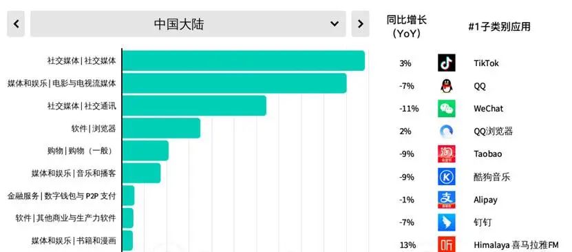 圖:2024年各類別軟件總使用時(shí)長(zhǎng)及增速統(tǒng)計(jì),來(lái)源:Sensor Tower