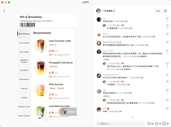 聯商快訊:日前,瑞幸咖啡在小紅書上宣布,其在紐約的首批美國門店開業(yè)。