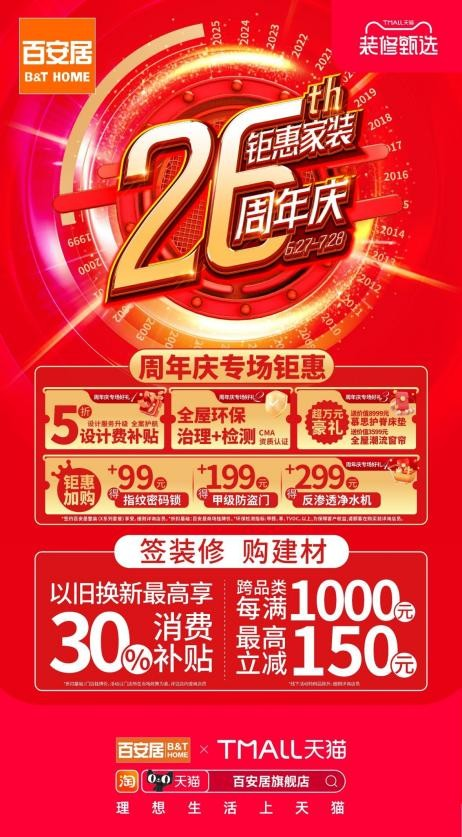 百安居以匠心深耕家居領(lǐng)域,二十六載砥礪前行,始終與時(shí)代脈搏同頻共振。周年慶典期間,百安居深度融合政府消費(fèi)補(bǔ)貼政策,通過雙重賦能重構(gòu)家裝價(jià)值鏈條,答謝消費(fèi)者長期信賴。
