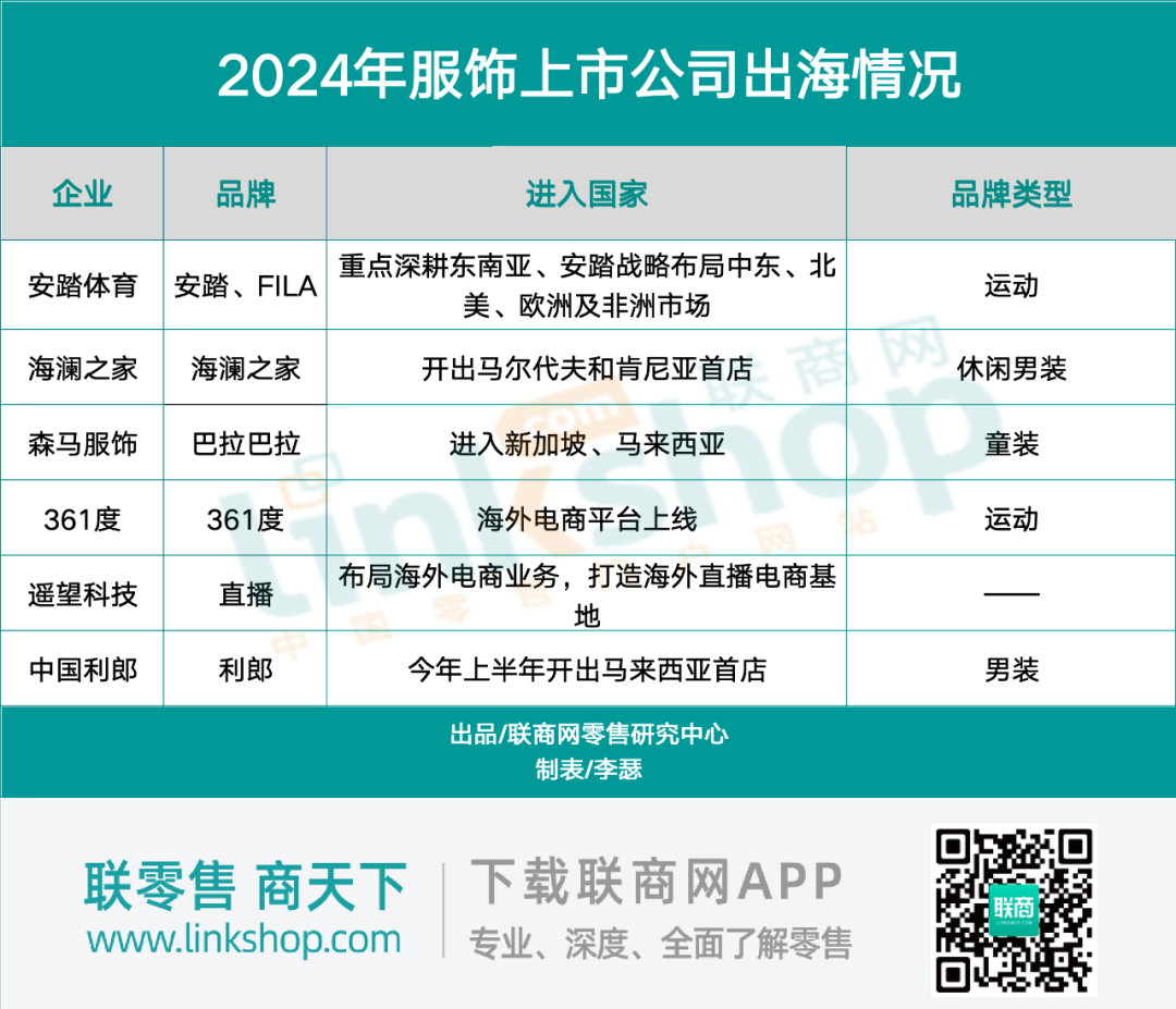 休閑服飾方面,海瀾之家開出了馬爾代夫和肯尼亞首店;中國利郎計(jì)劃今年上半年開出馬來西亞首店。此外,森馬服飾旗下童裝巴拉巴拉進(jìn)入新加坡、馬來西亞;星期六母公司遙望科技布局海外電商業(yè)務(wù),打造海外直播電商基地。