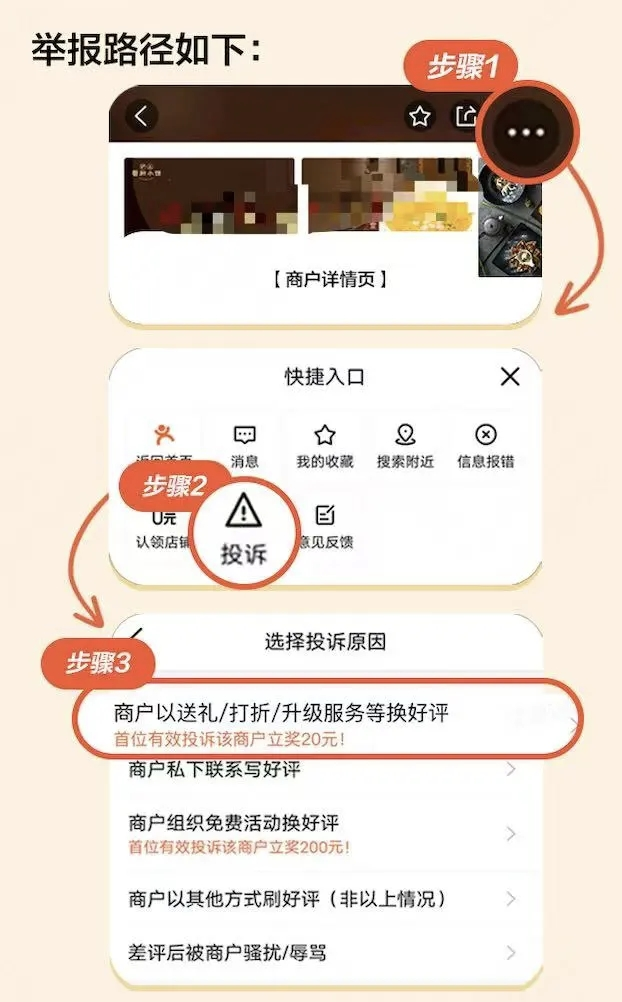 除此之外,在此次欄目改版升級前,美團(tuán)還針對消費(fèi)者吃飯時被要好評、寫真實(shí)差評吐槽被騷擾的問題,推出了全民監(jiān)督機(jī)制,開啟一鍵投訴功能。