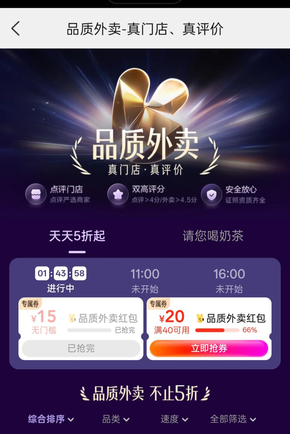 具體而言,“品質(zhì)外賣”入駐商家均為大眾點(diǎn)評嚴(yán)選商家,點(diǎn)評>4分且外賣>4.5分,證照資質(zhì)齊全,主打“真門店,真評價”。