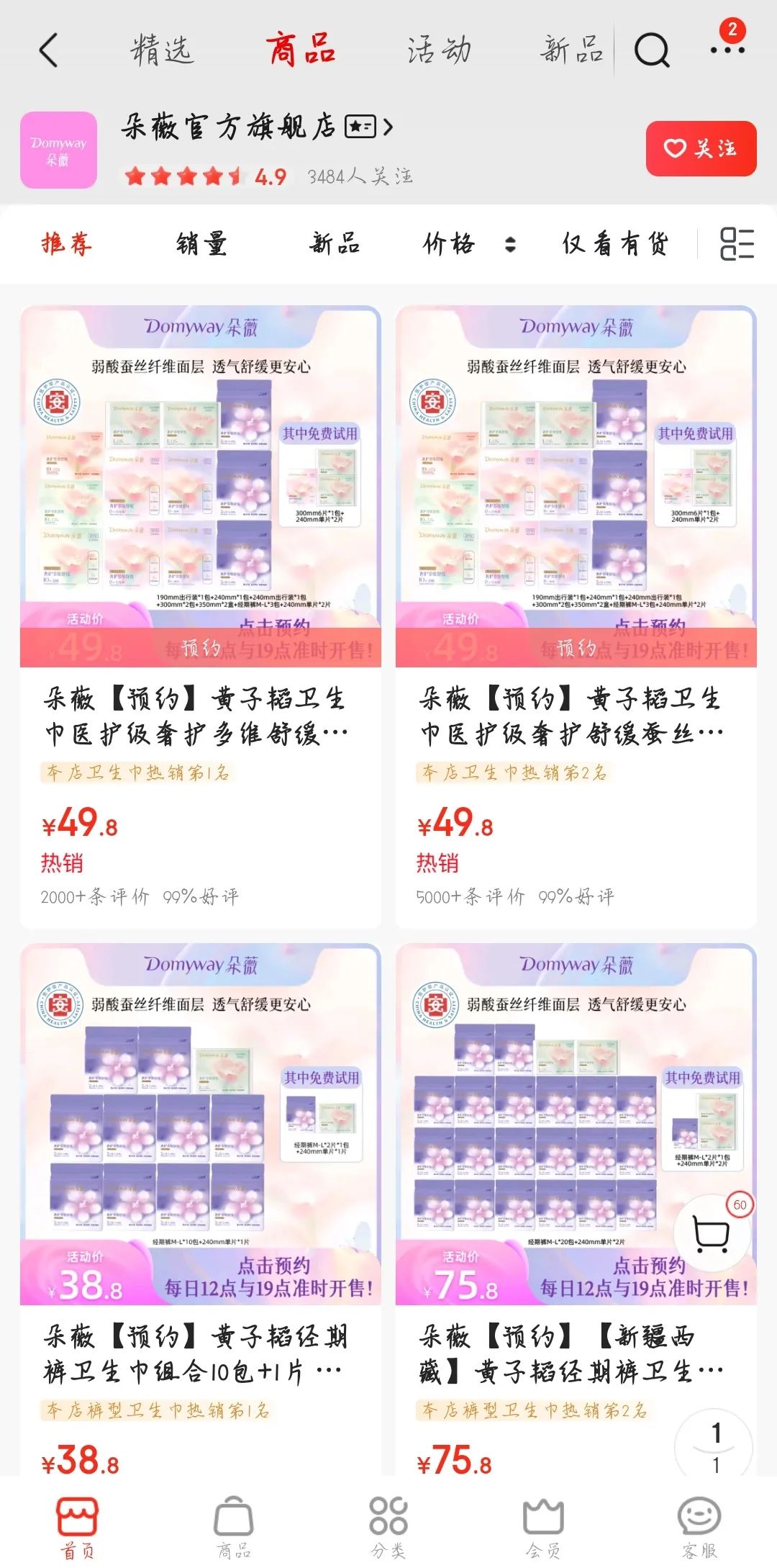值得一提的是,黃子韜多次公開發(fā)聲高呼要做衛(wèi)生巾品牌后,粉絲紛紛表示大力支持,朵薇品牌社區(qū)儼然形成了“粉絲應援”的新領域。另原價49.8元的組合裝(含62片不同規(guī)格產品)被黃牛在二手平臺倒賣至55元-190元區(qū)間,朵薇抖音直播流量56.6%源于推薦等數(shù)據(jù),也再次印證黃子韜明星效應,賦予了朵薇非同一般的市場消費號召力。