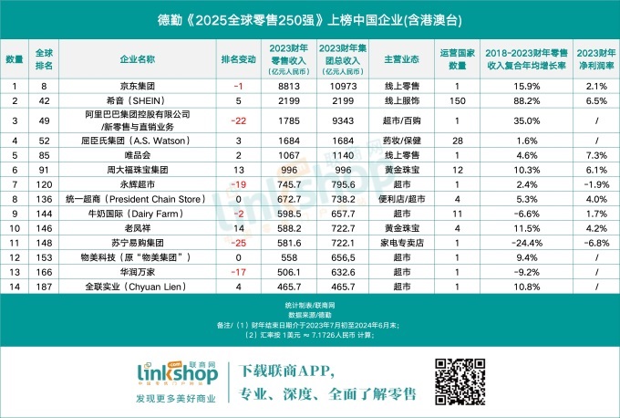 中國零售分化升級,14家企業(yè)上榜