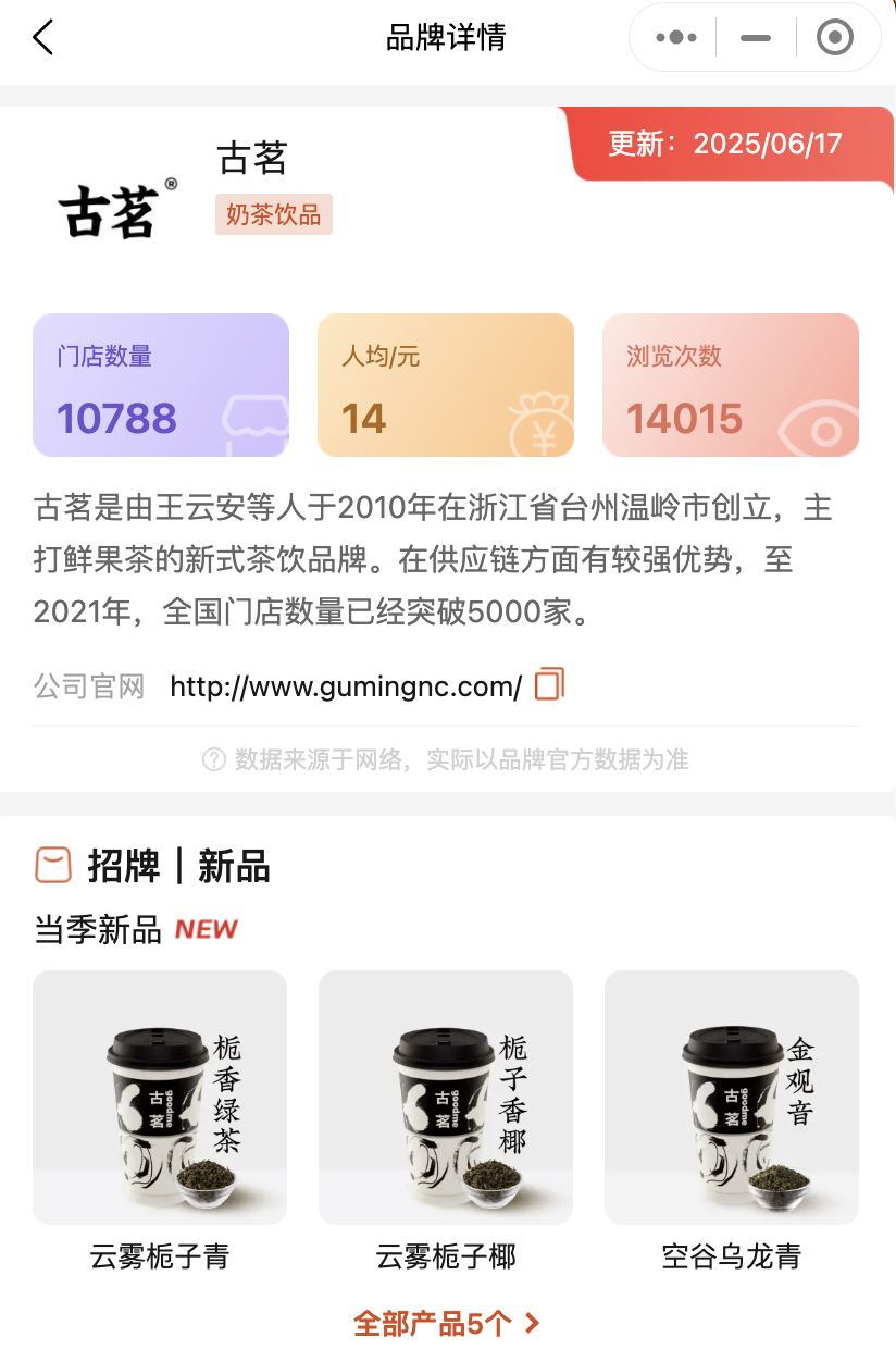 中端價位,10-15元主力戰(zhàn)場:古茗、茶百道(14元)、滬上阿姨(13元)、益禾堂(10元),占據(jù)最大份額,產(chǎn)品聚焦鮮果茶、特色奶茶,創(chuàng)新活躍。