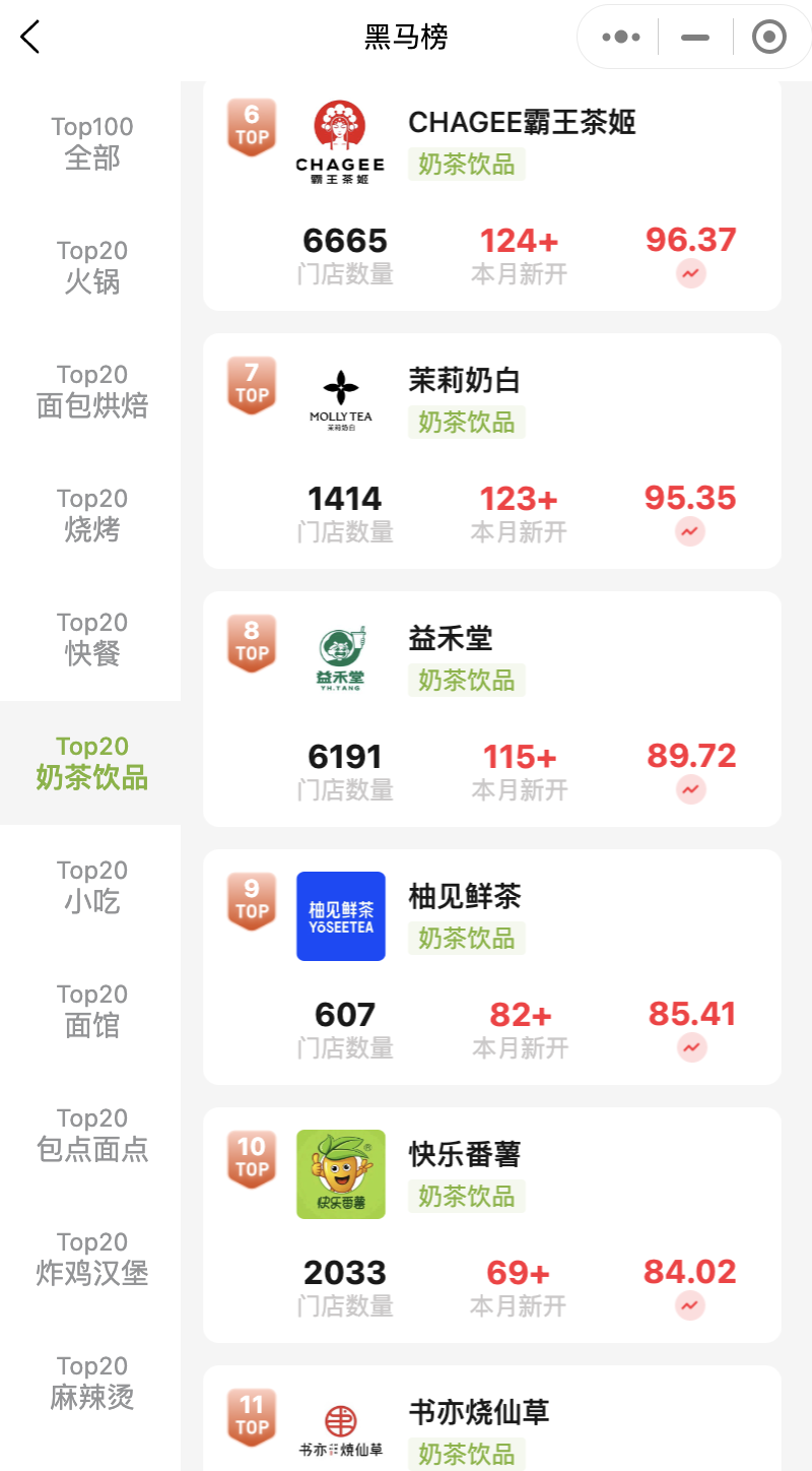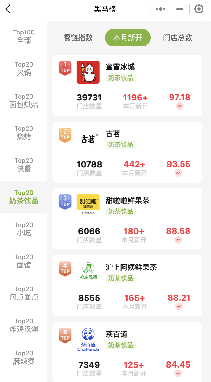 蜜雪冰城規(guī)模領(lǐng)先,上千新店,凸顯其成熟的裝修、選址和供應(yīng)鏈體系;古茗、甜啦啦、滬上阿姨、茶百道、霸王茶姬、茉莉奶白、益禾堂等均保持百店級別新增,體現(xiàn)區(qū)域黑馬與頭部“次梯隊(duì)”品牌的積極布局。