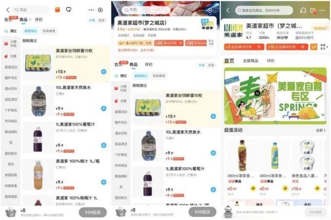 美道家的服務(wù)宗旨是“一切為了顧客滿意”,在顧客管理和服務(wù)上,美道家超市可以說是做到了“極致”,為了方便顧客購(gòu)物,開通線上多渠道銷售,美道家小程序、美團(tuán)、餓了么、抖音等,并且門店承諾“不滿意就退貨”,設(shè)置“500元投訴獎(jiǎng)”,“3公里內(nèi)免費(fèi)送貨”等便民措施。