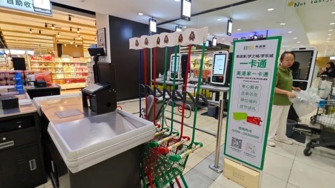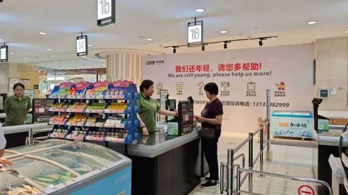 收銀臺(tái)是最容易造成擁堵的地方,因此,此次調(diào)改,美道家夢(mèng)之城店配備了充足的收銀臺(tái),還設(shè)有自助收銀區(qū),減少了顧客的等待時(shí)間。