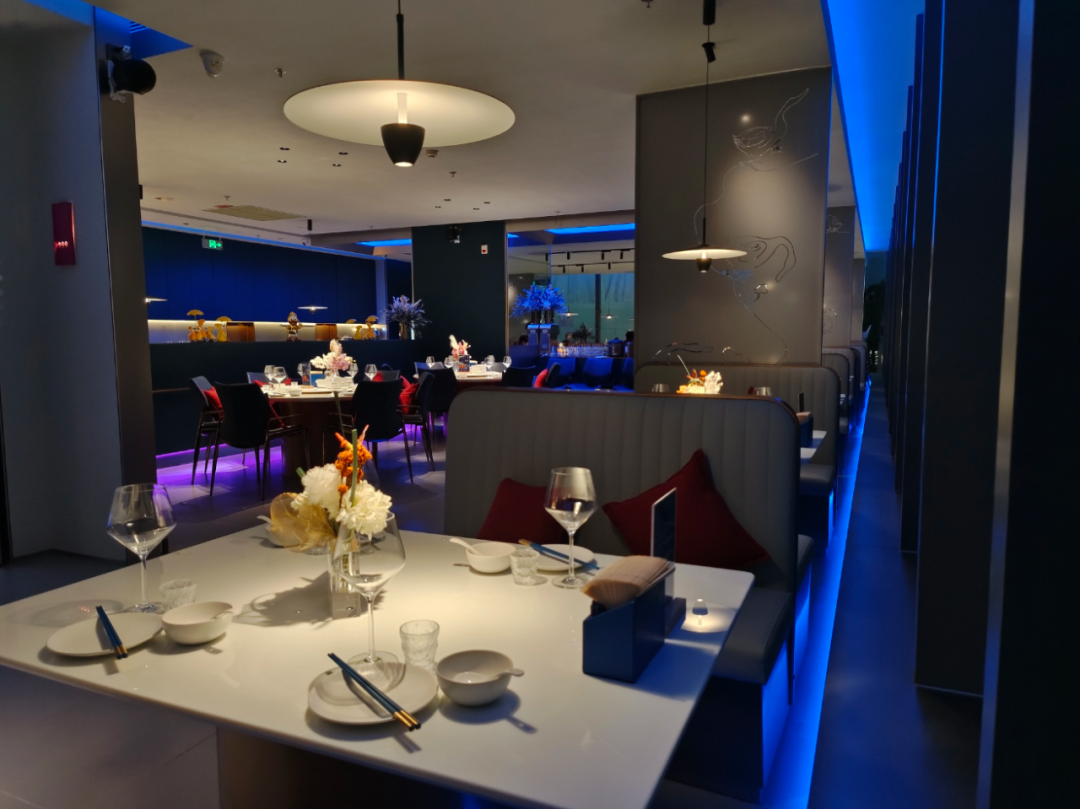 2、空間再設(shè)計(jì):采用克萊因藍(lán),融合現(xiàn)代中式,在300平方米以內(nèi)的空間里,創(chuàng)造“輕藝術(shù)餐”廳,既提升餐廳辨識度,也迎合年輕人愛拍照、愛分享的習(xí)慣。