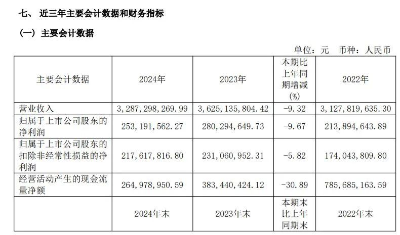 根據(jù)財(cái)報(bào)披露,2024年香飄飄全年?duì)I收32.87億元,同比下降9.32%;歸母凈利潤(rùn)2.53億元,同比下降9.67%。更嚴(yán)峻的是,2025年一季度公司甚至出現(xiàn)了虧損,營收同比下降19.98%至5.8億元,歸母凈利潤(rùn)虧損1877.5萬元,而去年同期還盈利2521.26萬元。