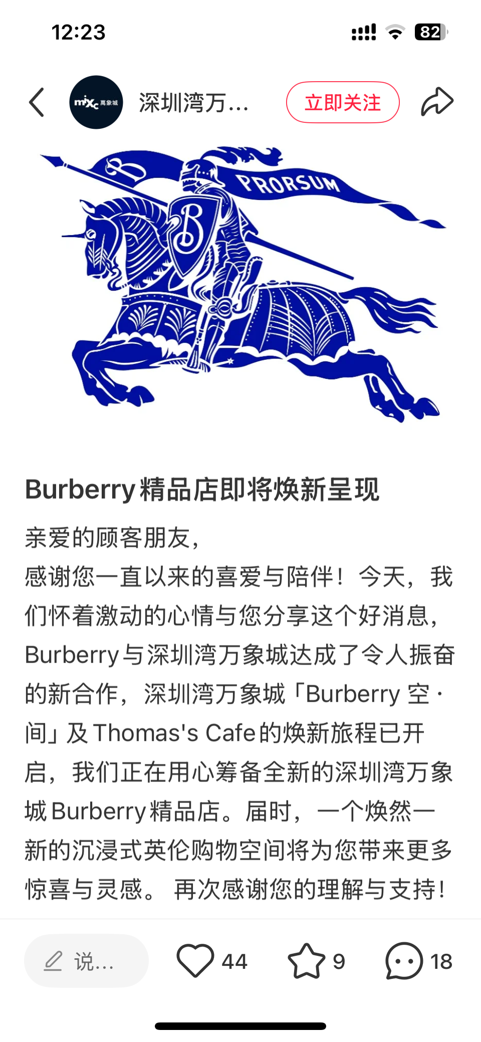 深圳灣萬象城也是趕緊辟謠,表示BURBERRY精品店只是移鋪升級,并不是撤鋪。