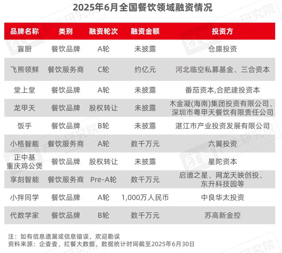 4.2025年6月餐飲領域融資事件、餐企上市詳情速覽;