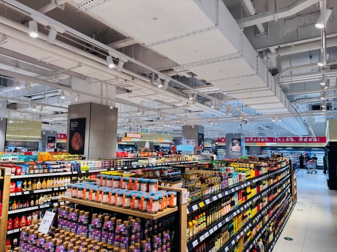 同時,門店延續(xù)調(diào)改精髓,破除傳統(tǒng)強制動線束縛,貨架高度整體降低,通道大幅拓寬,確保顧客推著購物車也能自由穿梭、愜意探索。深灰色調(diào)商品射燈精準聚焦,在提升商品質(zhì)感的同時,保持了空間整體的高級感與通透度。