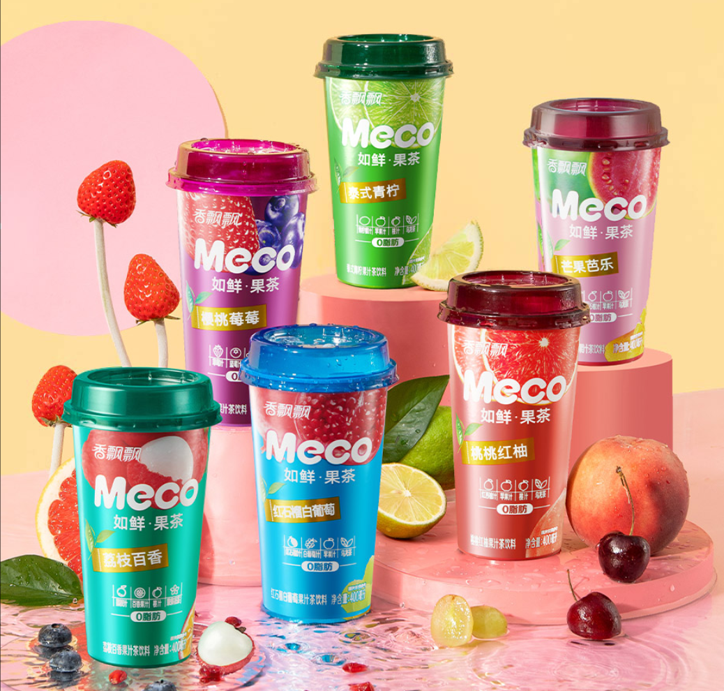 2017年,公司以果汁茶為切入口,進(jìn)軍即飲賽道。Meco果汁茶以創(chuàng)新的產(chǎn)品、杯裝形態(tài),在即飲市場(chǎng)快速站穩(wěn)了腳跟。