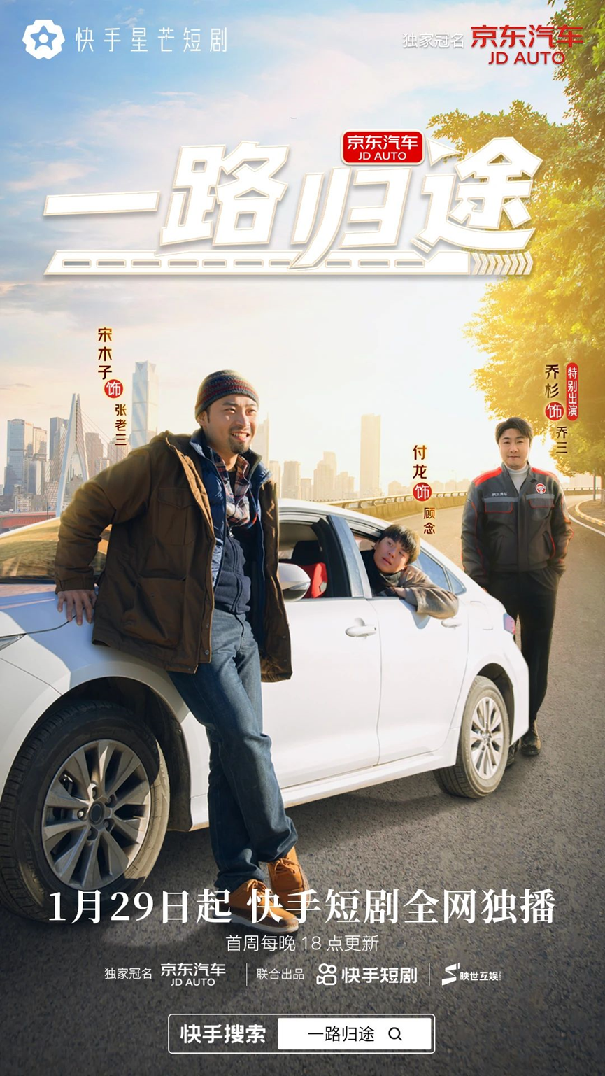 前兩年,京東汽車與快手星芒短劇合作,推出短劇《一路歸途》。這部劇是暖心公路喜劇,聚焦春節(jié)場(chǎng)景,講述一個(gè)小人物的歸鄉(xiāng)之途,通過汽車保養(yǎng)、洗車等情節(jié)來植入京東汽車品牌,并通過快手域內(nèi)資源引流至京東主會(huì)場(chǎng)。
