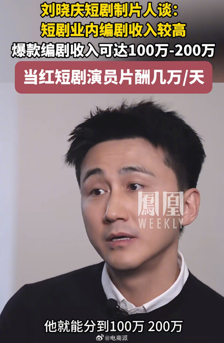 與此同時(shí),短劇從業(yè)者的收入也很高,爆款編劇收入可達(dá)100萬-200萬,當(dāng)紅短劇演員的日薪能有幾萬。