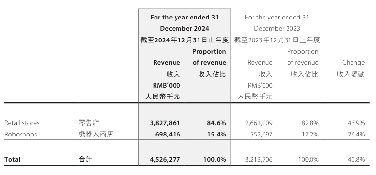 據(jù)悉,泡泡瑪特在國內(nèi)線下的零售形態(tài)主要分為的零售店、機器人商店,及限時快閃店。其中,泡泡瑪特零售店2024年收入達38.28億元,貢獻的收入占據(jù)了其國內(nèi)線下生意的84.6%。