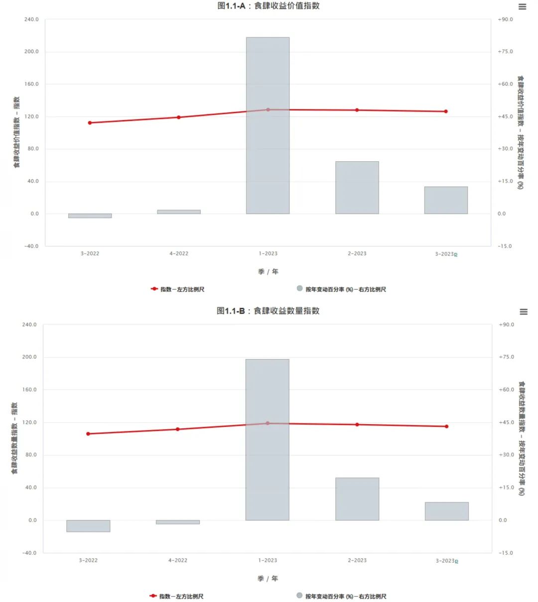 香港統(tǒng)計處數據顯示,彼時香港食肆收益價值、數量指數均呈現(xiàn)出明顯的上升趨勢。