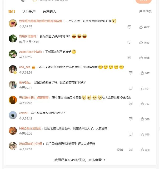 另一方面,消費(fèi)者對(duì)山姆商品信賴(lài)度的變化。此次事件中,山姆下架了太陽(yáng)餅、米布丁、低糖蛋黃酥等多款口碑商品,這些商品在消費(fèi)者中具有較高的回購(gòu)率和認(rèn)可度。下架這些商品讓消費(fèi)者感到失望和不滿(mǎn),同時(shí)也對(duì)山姆的選品決策產(chǎn)生了質(zhì)疑。
