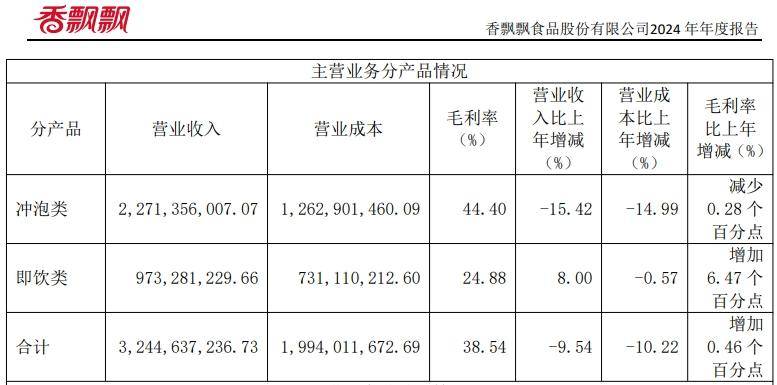 值得注意的是,即飲產(chǎn)品的收入增速也出現(xiàn)了放緩;2024年即飲業(yè)務(wù)收入同比增長8.00%,而2023年這一數(shù)據(jù)為41.16%。