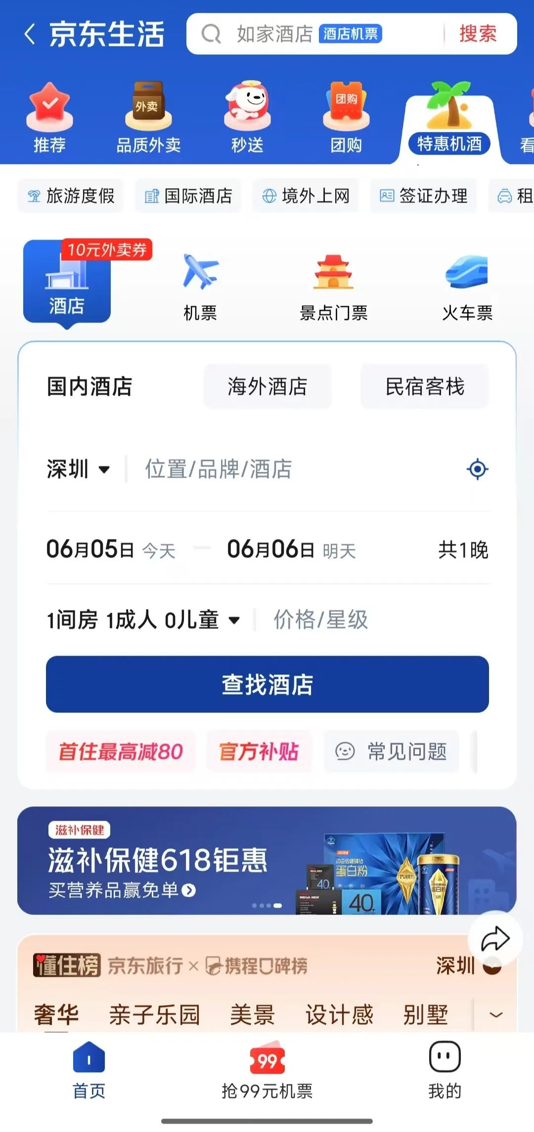 2025年6月,京東高薪挖掘酒旅方面的人才,并在APP悄悄上線了“特惠機(jī)酒”板塊!熬频+機(jī)票+景點(diǎn)門票+火車票”的頁面布局,覆蓋用戶出游需求的方方面面。