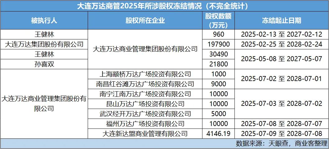 據(jù)不完全統(tǒng)計(jì),這已是2025年以來大連萬達(dá)商管遭遇的第7輪股權(quán)凍結(jié)。