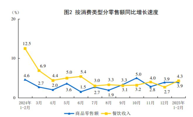 這些數(shù)字看起來很漂亮。但是,它的前景卻不樂觀。根據(jù)國家統(tǒng)計局公布的2024年國內(nèi)餐飲行業(yè)數(shù)據(jù),整個餐飲行業(yè)在2024年全年只增長了5.3%,較前一年的20.4%出現(xiàn)大幅下滑;并且,在今年前兩個月里,餐飲行業(yè)的收入同比增速進(jìn)一步下降到了4.3%,遠(yuǎn)低于去年同期的12.5%。