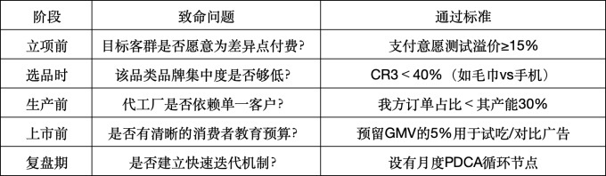 終極避坑框架:自有品牌開發(fā)5×5檢查表,項目每個階段用5分鐘回答5個問題: