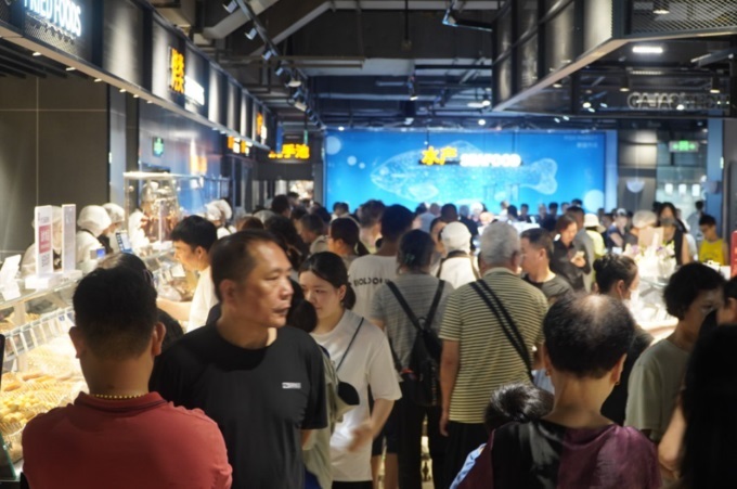 同時引入的三家與胖東來同源的優(yōu)質(zhì)供應(yīng)商——九多肉多、雙匯、洽禾,帶來了如香辣豬蹄和五香豬蹄等招牌單品。現(xiàn)場自制的小龍蝦堆成小山,麻辣、蒜香等口味香氣四溢;剛出爐的招牌烤雞、烤鴨、蜜汁雞翅皮脆肉嫩;手工大包子餡料飽滿,煙火氣十足。