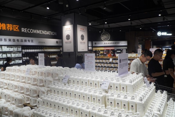 食百區(qū)重點推介了南昌人熟悉的本地特色好物,同時,店內(nèi)顯著位置陳列著多款廣受歡迎的胖東來同款商品,包括DL啤酒、自由·愛白酒、DL果汁等。永輝自有品牌也占據(jù)重要位置,詠悅匯小酌、100%果汁、黑松露火腿蘇打餅干、臺式香腸、酵素洗衣液等,為品質(zhì)生活提供更多元的選擇。