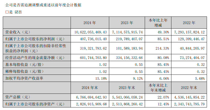 憑借對(duì)性價(jià)比的追求,三只松鼠重回增長(zhǎng)通道。結(jié)合今年3月底公司所發(fā)布的財(cái)報(bào)來看,2024年三只松鼠營(yíng)收重回百億規(guī)模達(dá)106.22億,同比增長(zhǎng)49.3%;歸母凈利潤(rùn)為4.08億,同比增長(zhǎng)85.51%,這一數(shù)據(jù)表現(xiàn)除了徹底扭轉(zhuǎn)此前幾年的頹勢(shì)以外,還創(chuàng)下了公司上市以來的最高營(yíng)收紀(jì)錄。