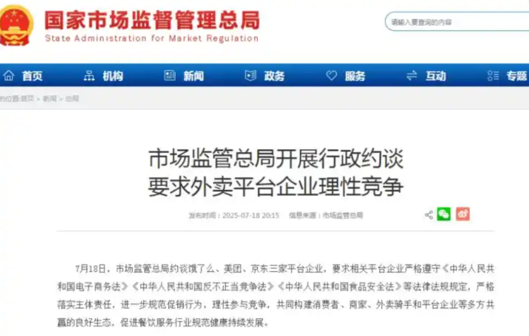 盡管7月18日國家市場監(jiān)管總局已約談餓了么、美團、京東,要求平臺理性參與競爭。但19日,平臺仍在持續(xù)發(fā)券,雖然沒有之前“零元購”的力度大,但目前來看,補貼并未退場,而是以更規(guī)律隱性的方式持續(xù)。