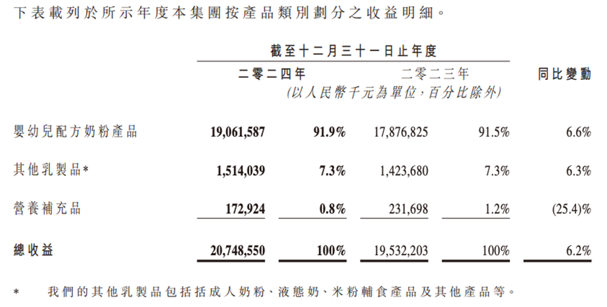 不過需要注意的是,目前飛鶴仍高度依賴嬰幼兒奶粉產(chǎn)品。財報顯示,2024年,飛鶴嬰幼兒奶粉產(chǎn)品營收190.62億元,占總營收的91.9%。同期,飛鶴其他乳制品以及營養(yǎng)補充品僅貢獻8.1%的營收。并且其他乳制品、營養(yǎng)補充品的營收同比增速僅分別為6.3%和-25.4%。