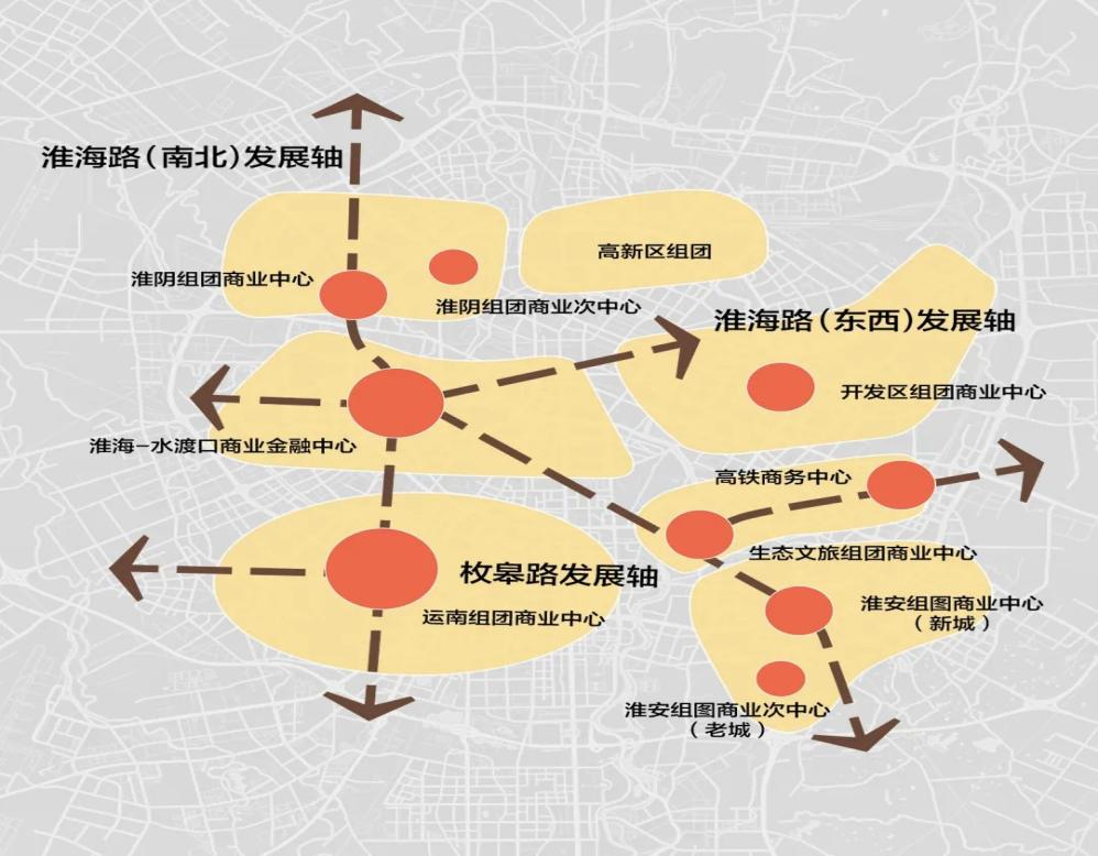 從更大的范圍看,淮安商圈將形成“一圈多點”的局面。