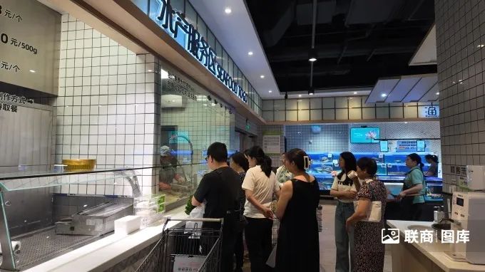 場景化服務(wù)增強(qiáng)信任:水產(chǎn)海鮮區(qū)顧客可現(xiàn)場打撈瀝水,享受宰殺、烹飪加工服務(wù),全透明加工間讓過程清晰可見。水產(chǎn)區(qū)員工操作專業(yè)利落,是現(xiàn)場一大亮點(diǎn)。