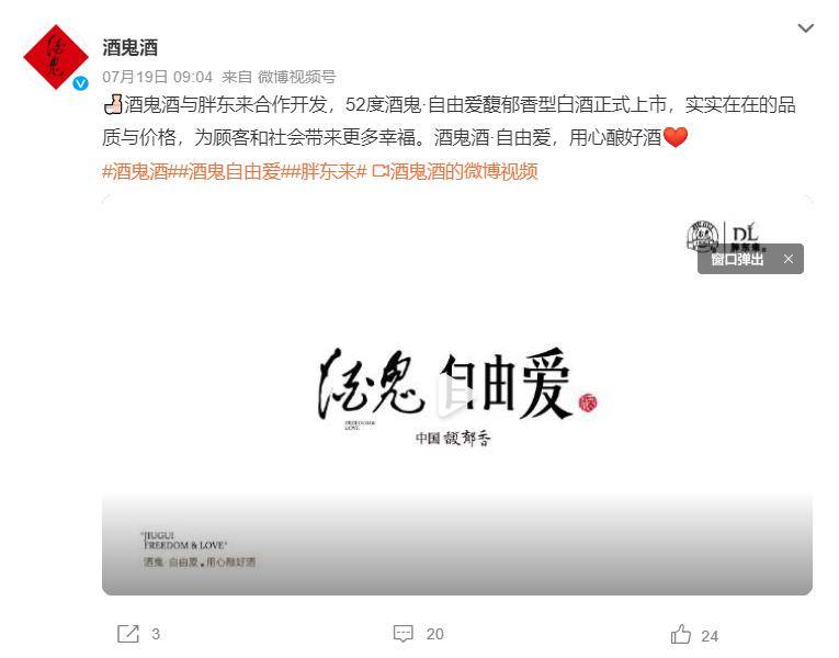 7月19日,酒鬼酒官方賬號(hào)宣布,與胖東來合作開發(fā),52度酒鬼·自由愛馥郁香型白酒正式上市。