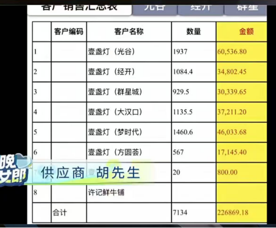 據(jù)“芒果愛晚”視頻報(bào)道,壹盞燈被曝出拖欠多家供應(yīng)商貨款,金額超過千萬元人民幣。受影響的供應(yīng)商包括豬肉供應(yīng)商、酒水糧油供應(yīng)商等,其中供應(yīng)酒水糧油的胡先生透露,僅其一家就被拖欠了160多萬元。