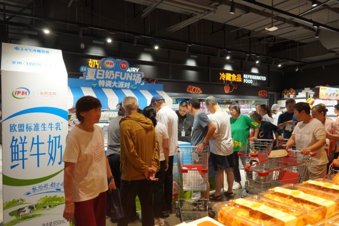 特色專區(qū)更是融合了在地文化與品質(zhì)優(yōu)選,“滬上風(fēng)物” 專區(qū)集中展示大白兔奶糖、本地糕點(diǎn)等上海經(jīng)典伴手禮;胖東來自有品牌專區(qū)則引入DL礦泉水、精釀啤酒、燕麥脆等爆款單品;永輝自有品牌專區(qū)涵蓋醬香白酒、精釀啤酒、黑松露餅干等生活剛需。其中永輝近期上新的定制新品——伊利高品質(zhì)鮮牛奶(950ml),以7.9元親民價(jià)迅速走紅。該款家庭裝鮮奶,選用GAP一級認(rèn)證牧場奶源,每100ml含3.2g優(yōu)質(zhì)乳蛋白,體細(xì)胞及菌落數(shù)嚴(yán)于歐盟標(biāo)準(zhǔn),配合專利屋頂鎖鮮包裝與15天冷藏保質(zhì)期,成為永輝“優(yōu)質(zhì)平價(jià)”戰(zhàn)略的生動注腳。