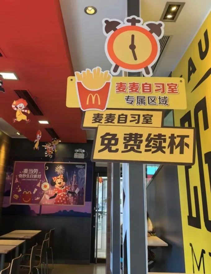 若將時(shí)間線進(jìn)一步前移,麥當(dāng)勞更早進(jìn)行了“自習(xí)室空間”的嘗試。2023年7月24日至2024年2月28日,全國(guó)多個(gè)城市的26家麥當(dāng)勞門(mén)店開(kāi)設(shè)了“麥麥自習(xí)室”,用戶可通過(guò)提前預(yù)約門(mén)店和時(shí)間的方式前往自習(xí)。麥當(dāng)勞通過(guò)設(shè)置“無(wú)聲早餐時(shí)段”等方式,著力營(yíng)造適宜學(xué)習(xí)的環(huán)境,試圖在自習(xí)室領(lǐng)域占據(jù)一定市場(chǎng)份額。