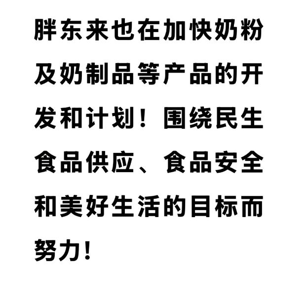 于東來發(fā)文表示:“胖東來正在加快奶粉及奶制品等產(chǎn)品的開發(fā)和計(jì)劃!圍繞民生食品供應(yīng)、食品安全和美好生活的目標(biāo)而努力!