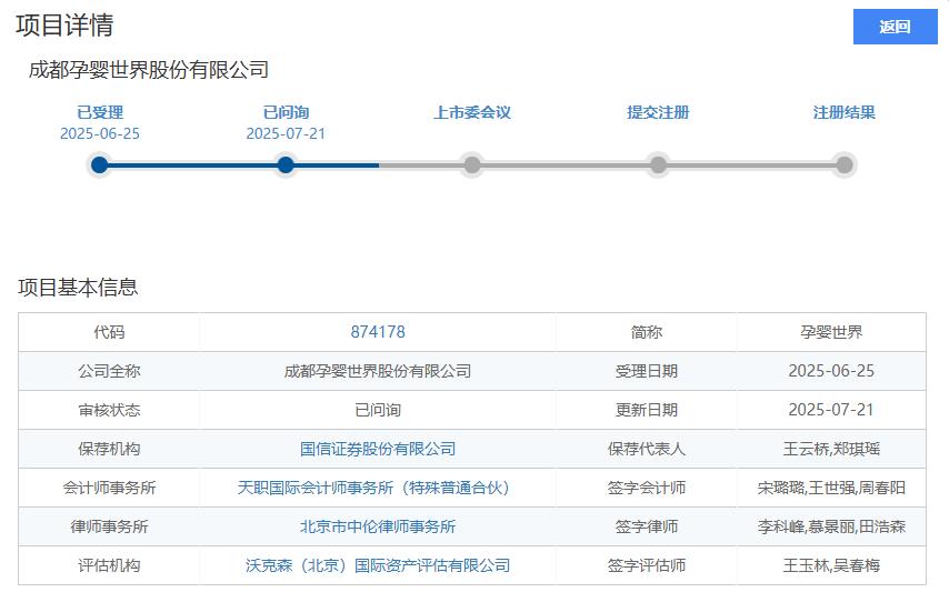 今年5月,孕嬰世界披露上市輔導(dǎo)工作,擬在北交所上市,輔導(dǎo)機(jī)構(gòu)為國(guó)信證券。近日,其向北交所遞交的上市申請(qǐng)已獲受理。